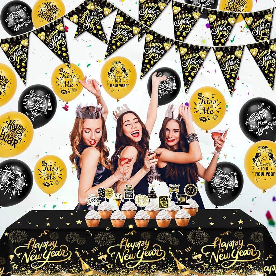 Silvester Deko 2024, Silvester Deko Party Set, Neujahr Dekoration